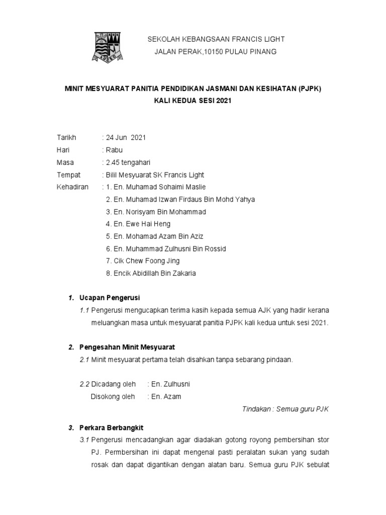 Contoh Minit Mesyuarat Bahasa Melayu Kerjaya Sains Dan Studocu